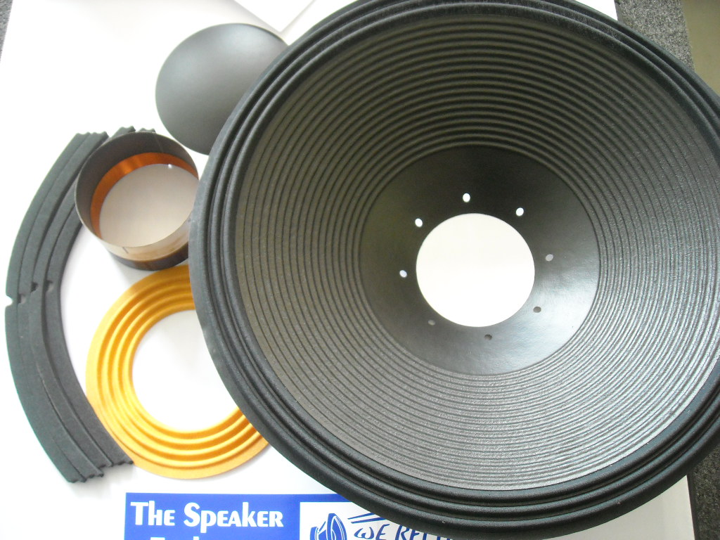 - Cone: 18″ outside diameter, 4″ deep, 4.0″ voice coil opening, 3 roll surround, wet look cone, vents in bottom of cone